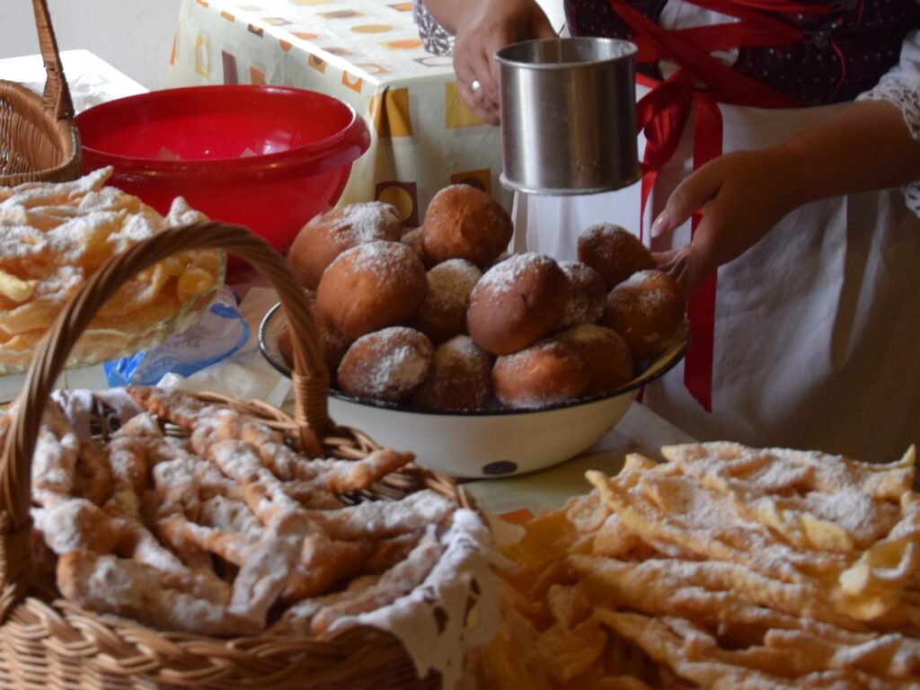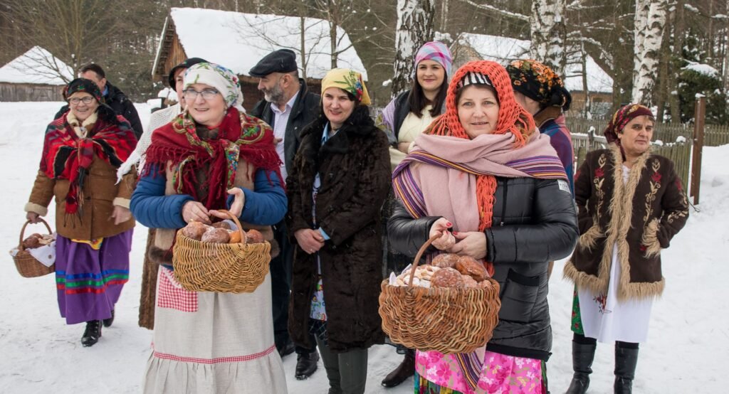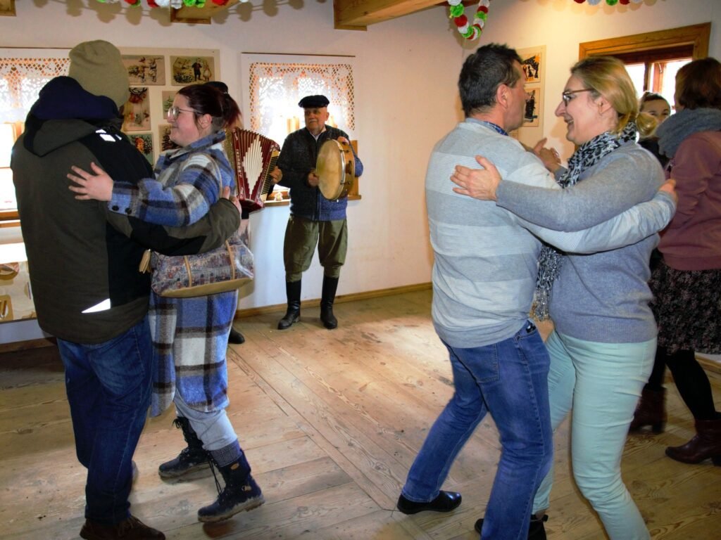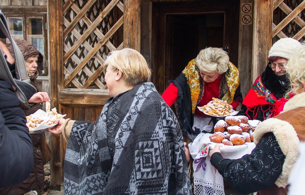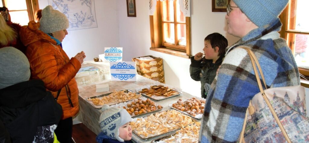 Il était d’usage après la procession que toutes les personnes présentes se retrouvent dans le manoir en bois pour poursuivre la fête au son de la musique folklorique, et déguster des pączki et des faworski.
