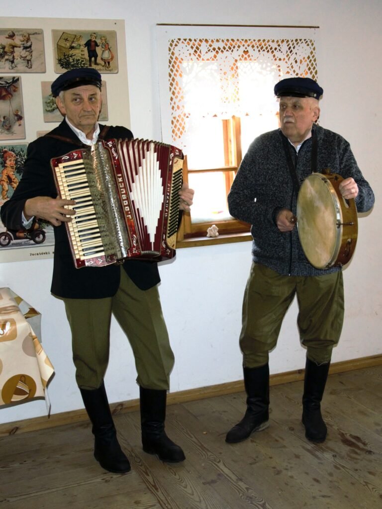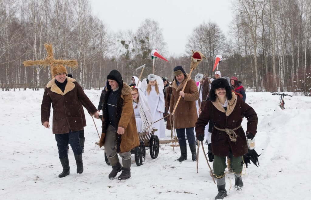 Ces groupes de » przebierańcy » (déguisés) allaient de maison en maison, chantant et dansant en échange de friandises ou de petites offrandes. Leur passage était censé apporter bonheur et prospérité aux habitants.