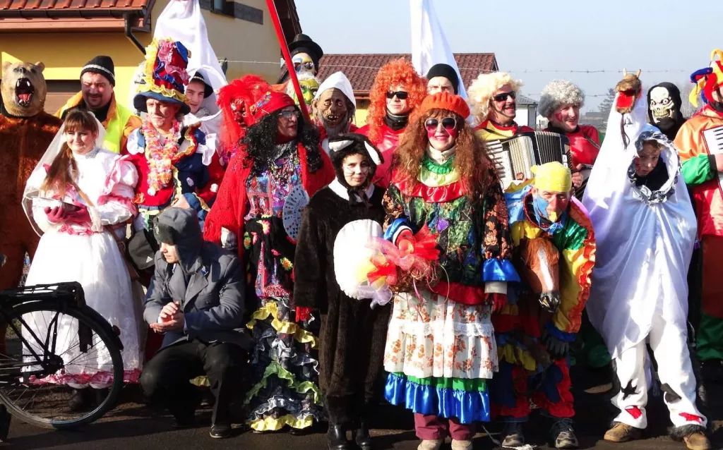 L’attraction principale c’est la procession des personnes costumées : « Main dans la main » marchent : le grand-père avec une femme, un Juif avec une gitane, un diable avec un ange et la mort, il y aussi des animaux comme la cigogne, la chèvre et le turon.